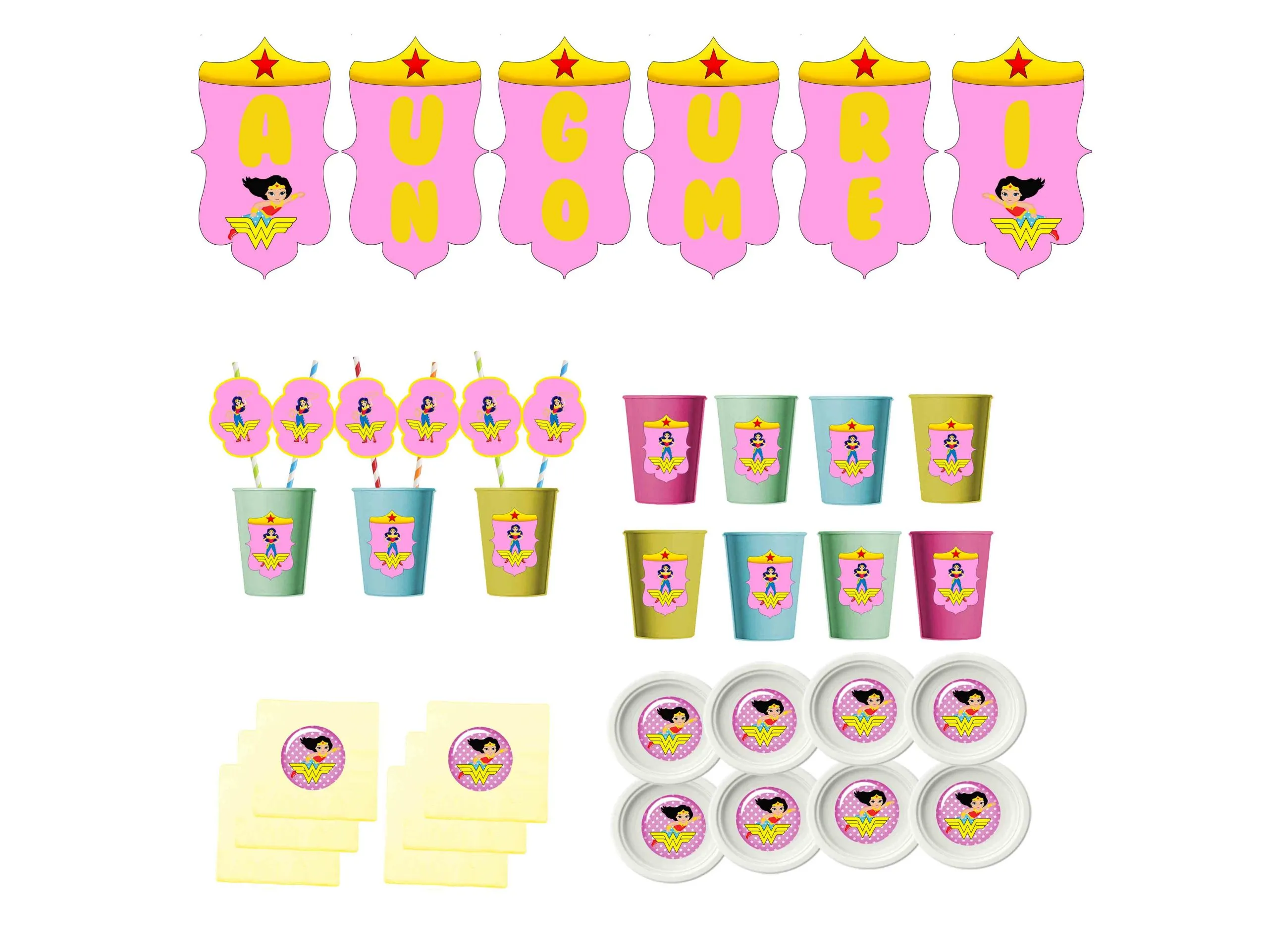 Wonder Woman Festa Compleanno Personalizzato Bambina kit per 8 persone o piu persone